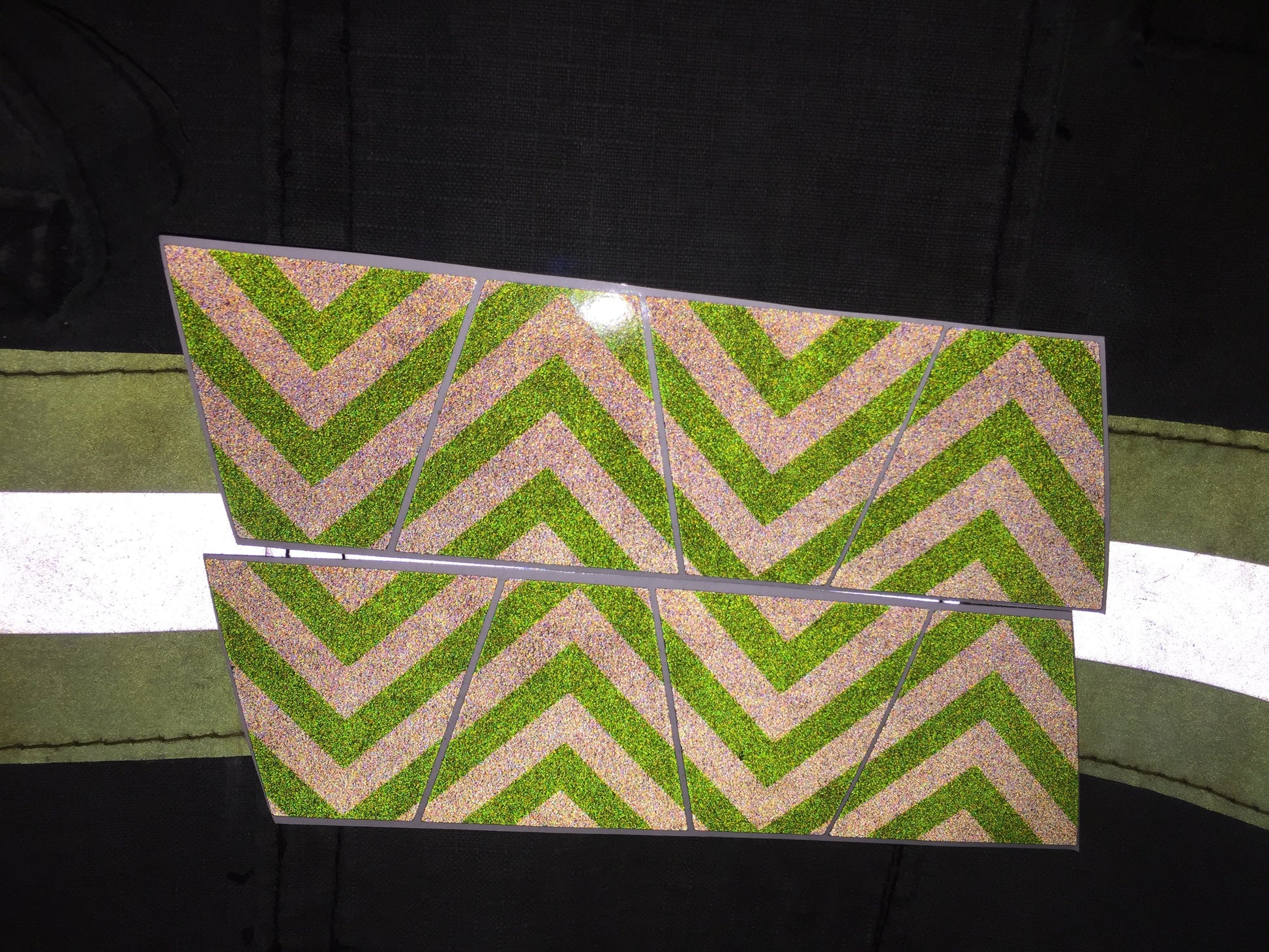 BLACKED OUT BLACK AND GREEN CHEVRON REFLECTIVE HELMET TETRAHEDRON (TET) 8 PACK