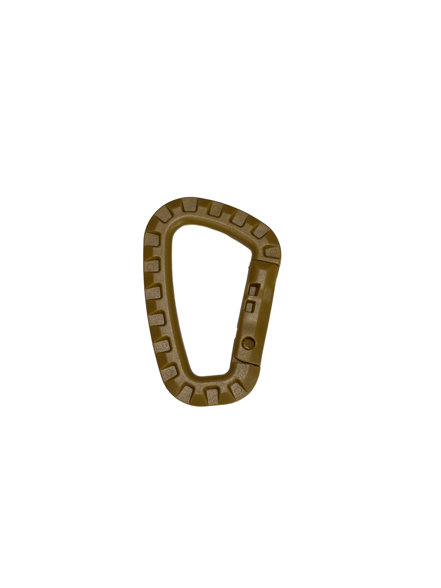 This Coyote Tan Plastic Carabiner Clip has a compact size, measuring 3.4 inches in length and 1 inch in width.  The carabiner clip design allows for easy attachment to backpacks, keychains, and other gear, making it a versatile accessory for outdoor activities and everyday use.