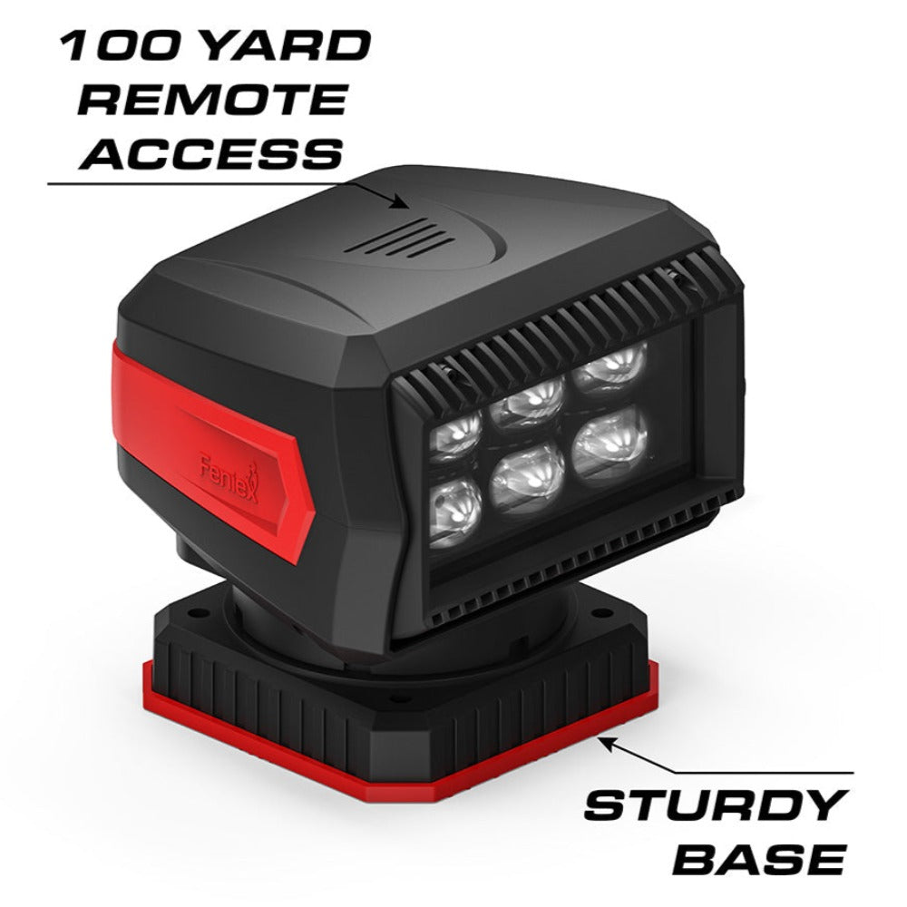 The newest edition to the Feniex family of advanced scene lighting is finally here: the Remote Spot Light. Remote-controlled and capable of emitting 12,000 lumens, this scene light offers incomparable performance and brightness. The Feniex Remote Spot Light features 60-watt Cree LEDs, strong enough for any time of day or weather condition. It's designed to rotate 180 degrees in both directions and 60 degrees up or down. The Remote Spot Light comes equipped with a remote control with flash and speed options for maximum control.