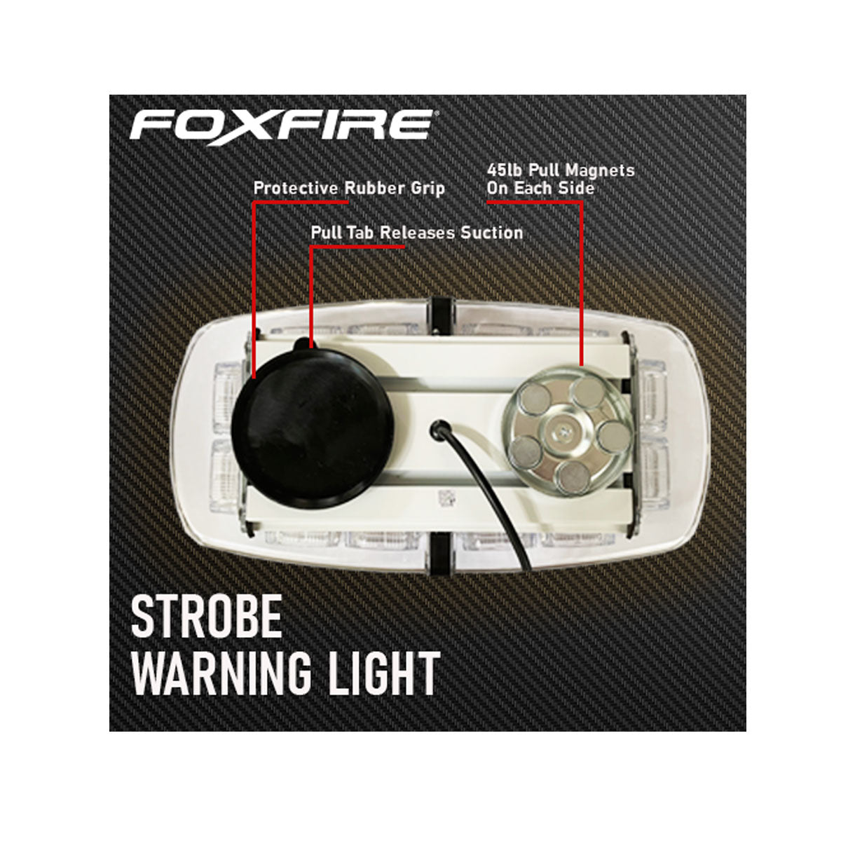 The Foxfire Amber Strobe Warning Light is packed with 36 powerful LED's and 7 different flash patterns. This product is designed to be mounted on top of a vehicle with the attached 2x45lb magnets.