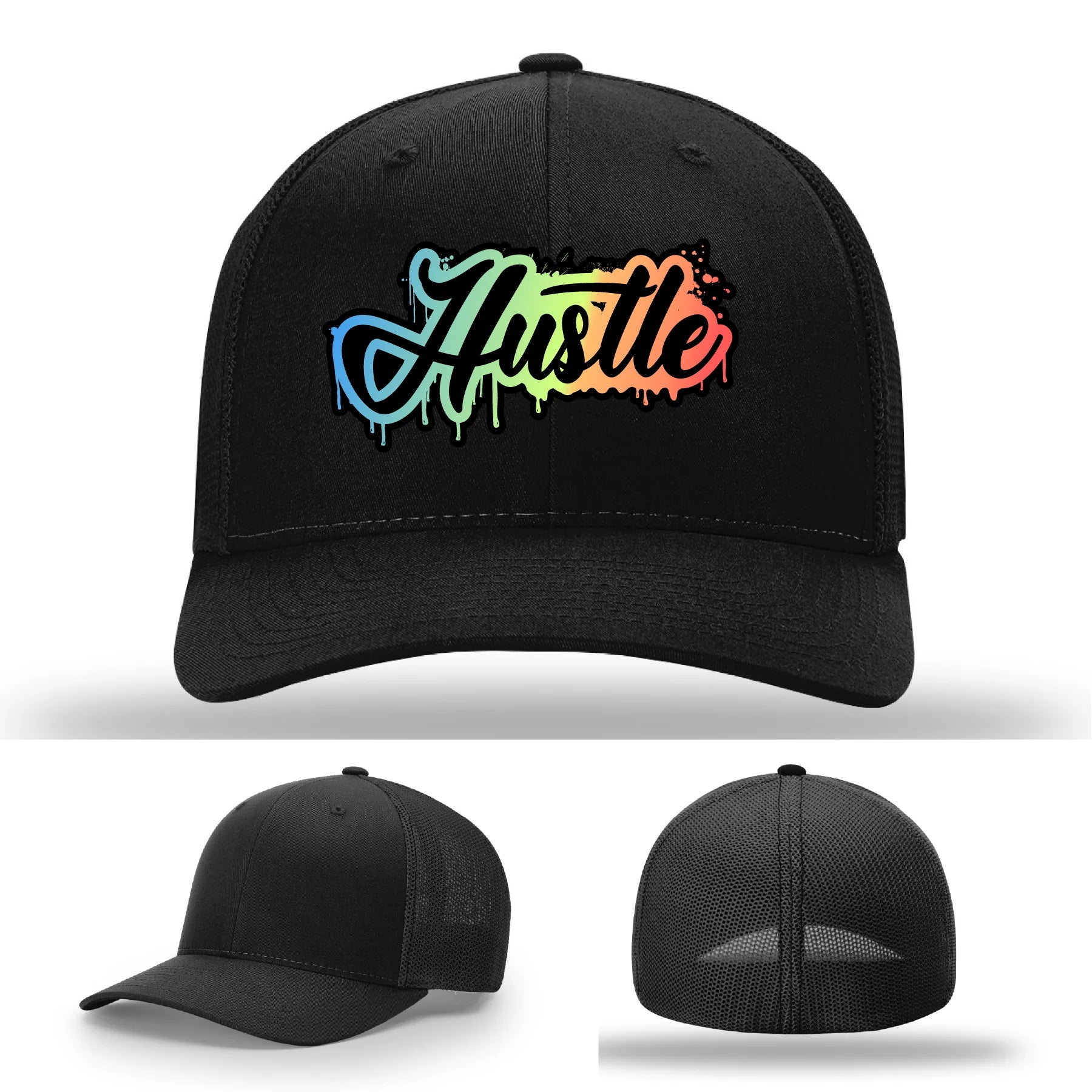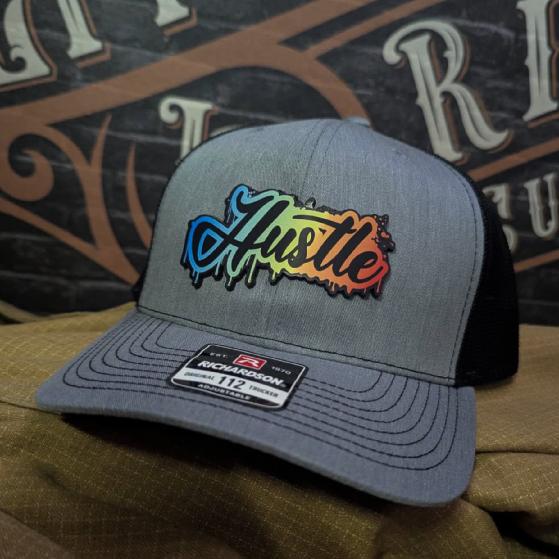 This one speaks for itself. Hustle. The leather patch lands in bold graffiti script with a dripping rainbow gradient that brings raw energy to your grind without saying a single extra word. It is the kind of statement you throw on for early mornings, late nights, and every repeat day in between when showing up is the plan.