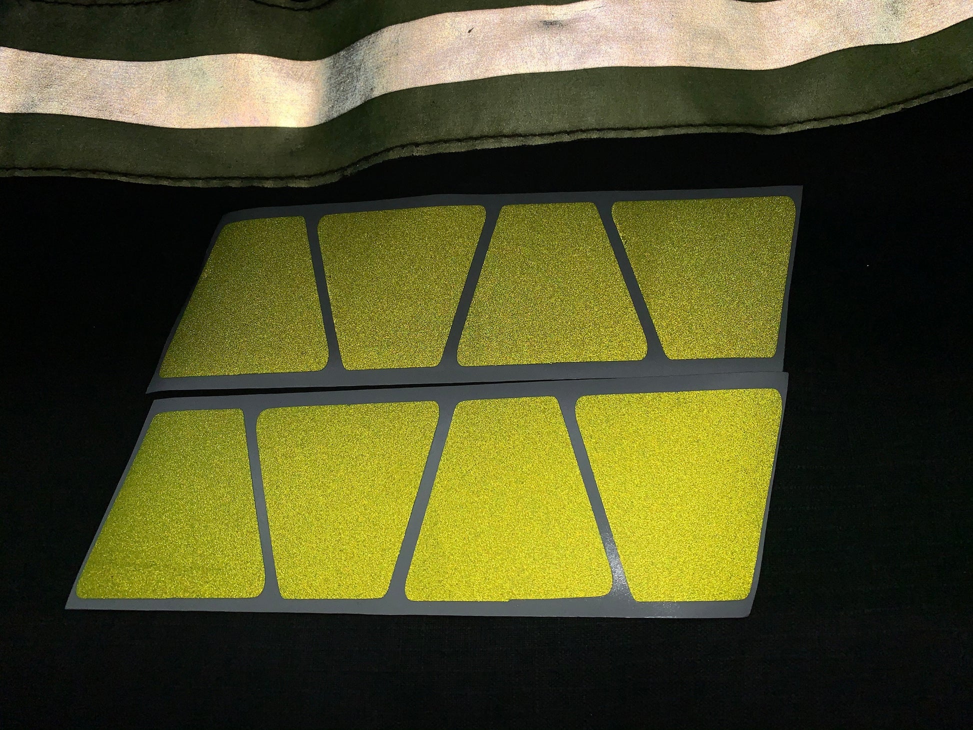 These decals are made of 3M premium reflective vinyl specifically designed for this type of application. Inks used are Eco-friendly