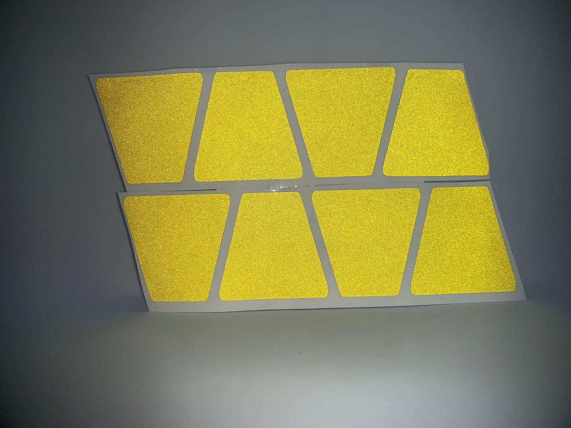 These decals are made of 3M premium reflective vinyl specifically designed for this type of application. Inks used are Eco-friendly