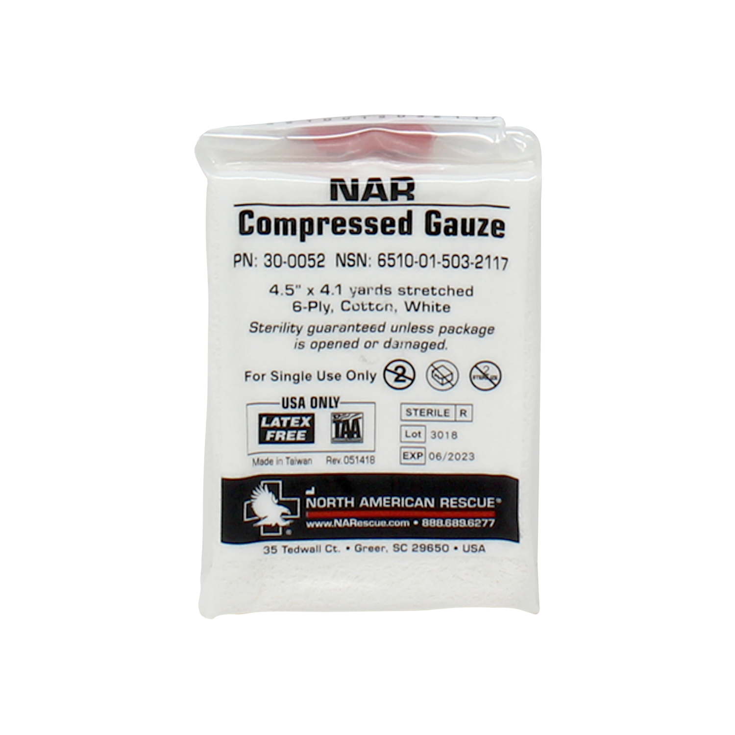 Includes tourniquet, Israeli bandage, and gauze dressing for effective bleeding control.