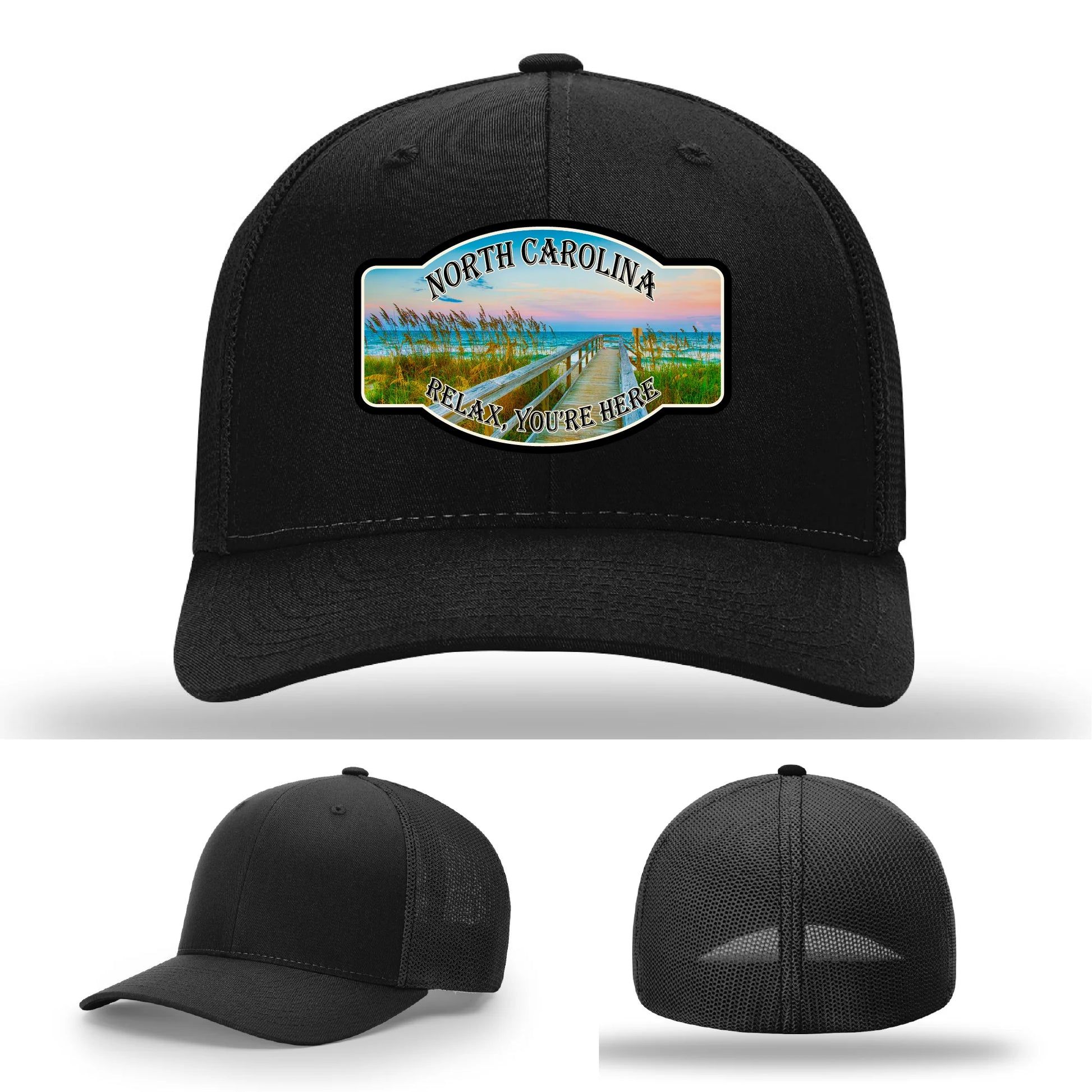 Kick back. You’ve made it. This isn’t just another hat—it’s a state of mind. The Relax You’re Here Leather Patch Hat pulls the North Carolina coast straight into your gear lineup with a patch that feels like the beach is calling your name. Pastel skies, a quiet boardwalk, and the words Relax, You’re Here printed on real leather set the tone every time you throw it on.