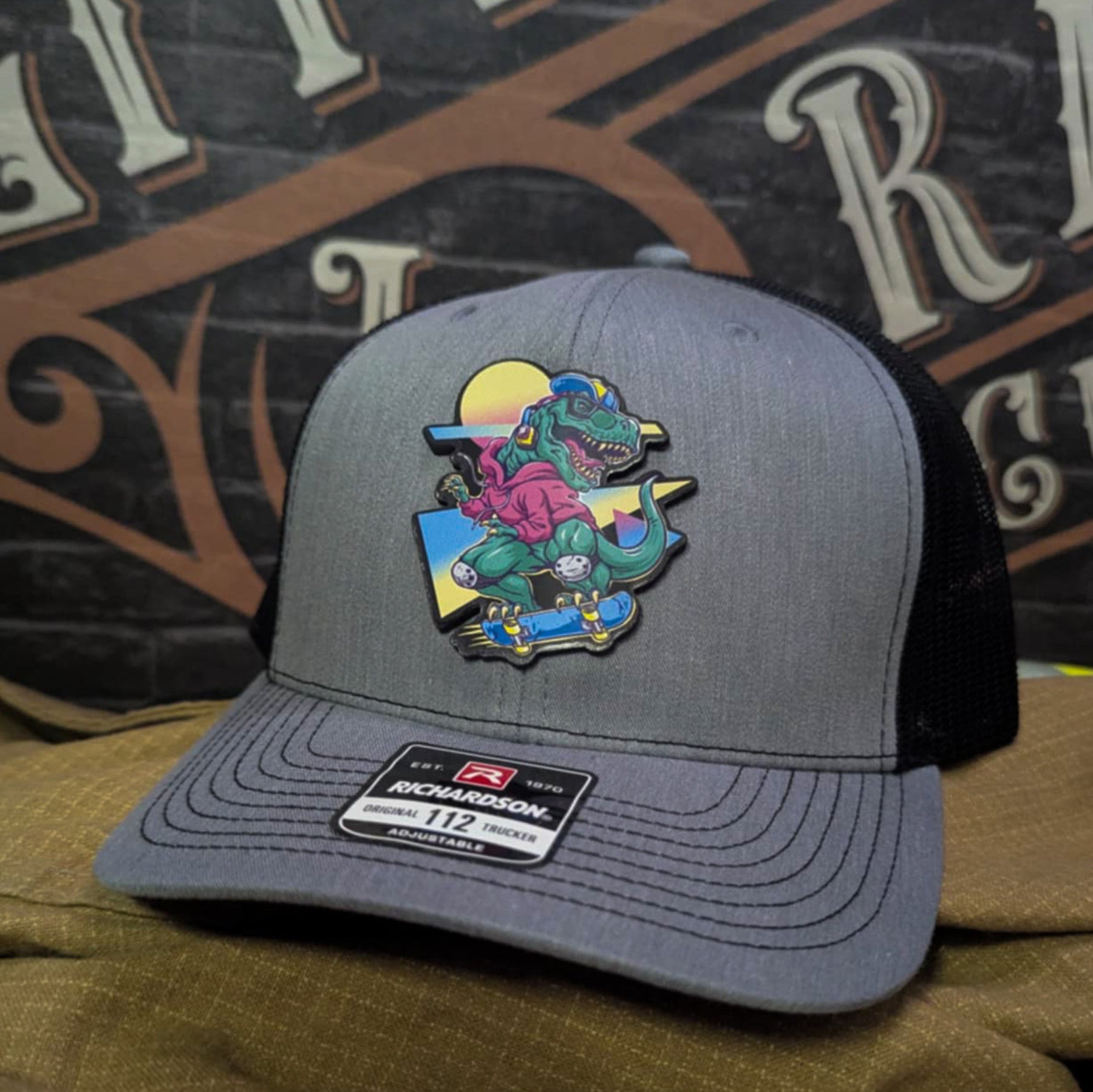 This isn’t your average dino. The Skater Rex Leather Patch Hat throws it back with a bold, neon-soaked T-Rex shredding a skateboard into the sunset. Printed in full color on real leather, this patch mixes retro vibes with modern streetwear energy—and it's ready to snap necks at the skatepark, firehouse, or wherever you roll.