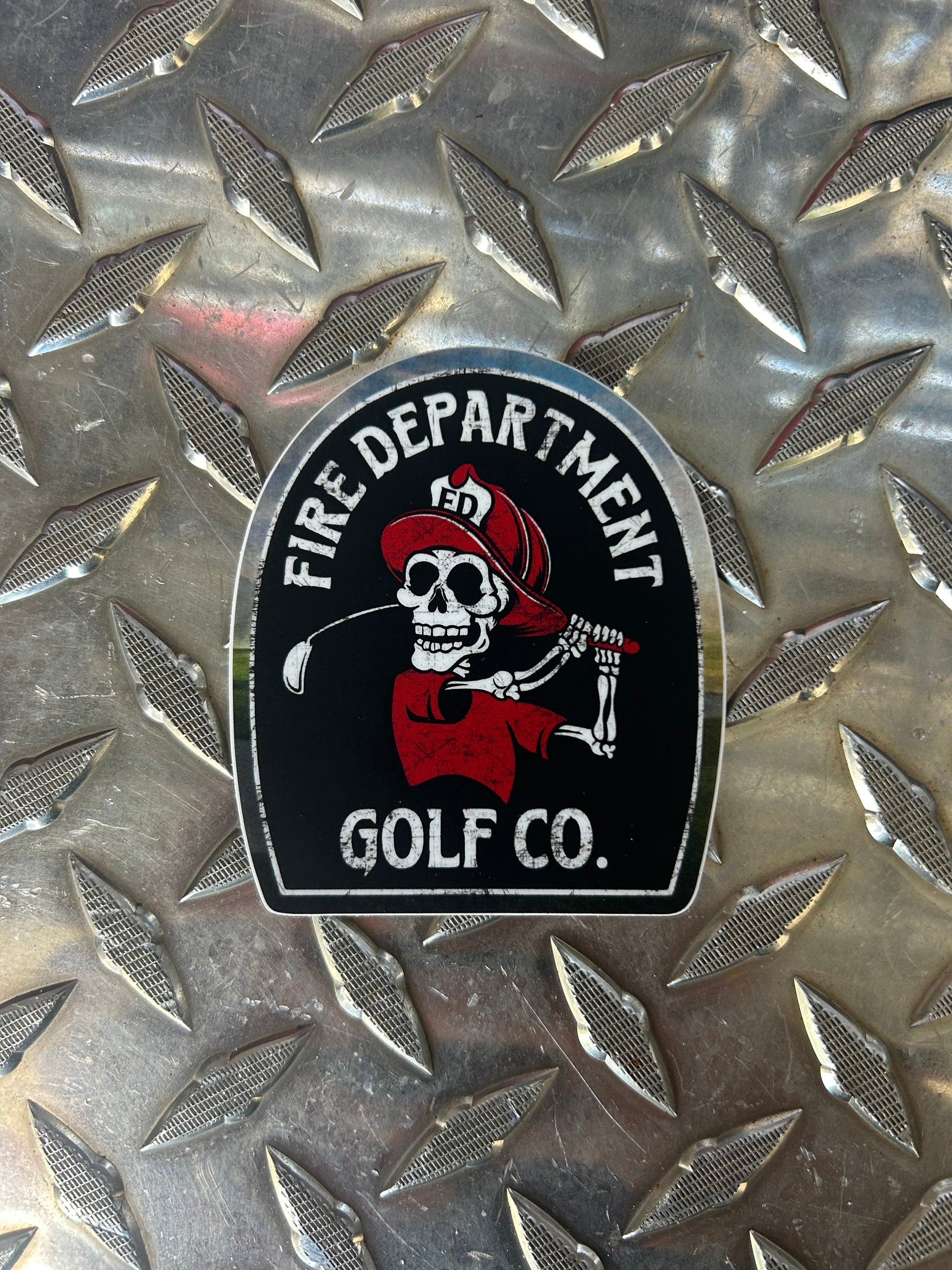 Add a playful touch to your collection with our Skeleton Golf Swing Sticker, featuring a lively skeleton mid-swing, perfect for Fire Department Golf Co. Made from durable, weather-resistant vinyl, this sticker is ideal for your golf bag or water bottle, or helmet showcasing your love for the game!