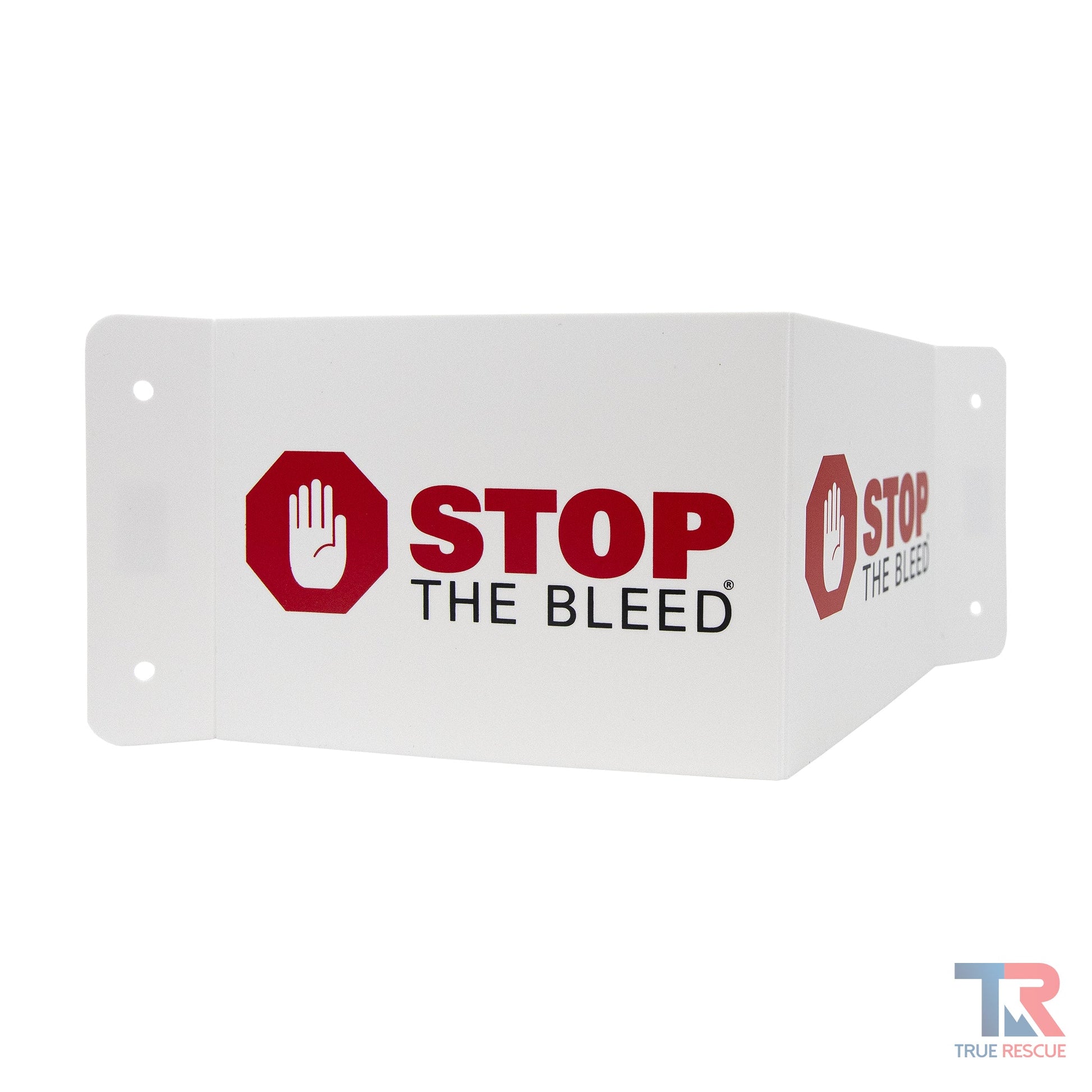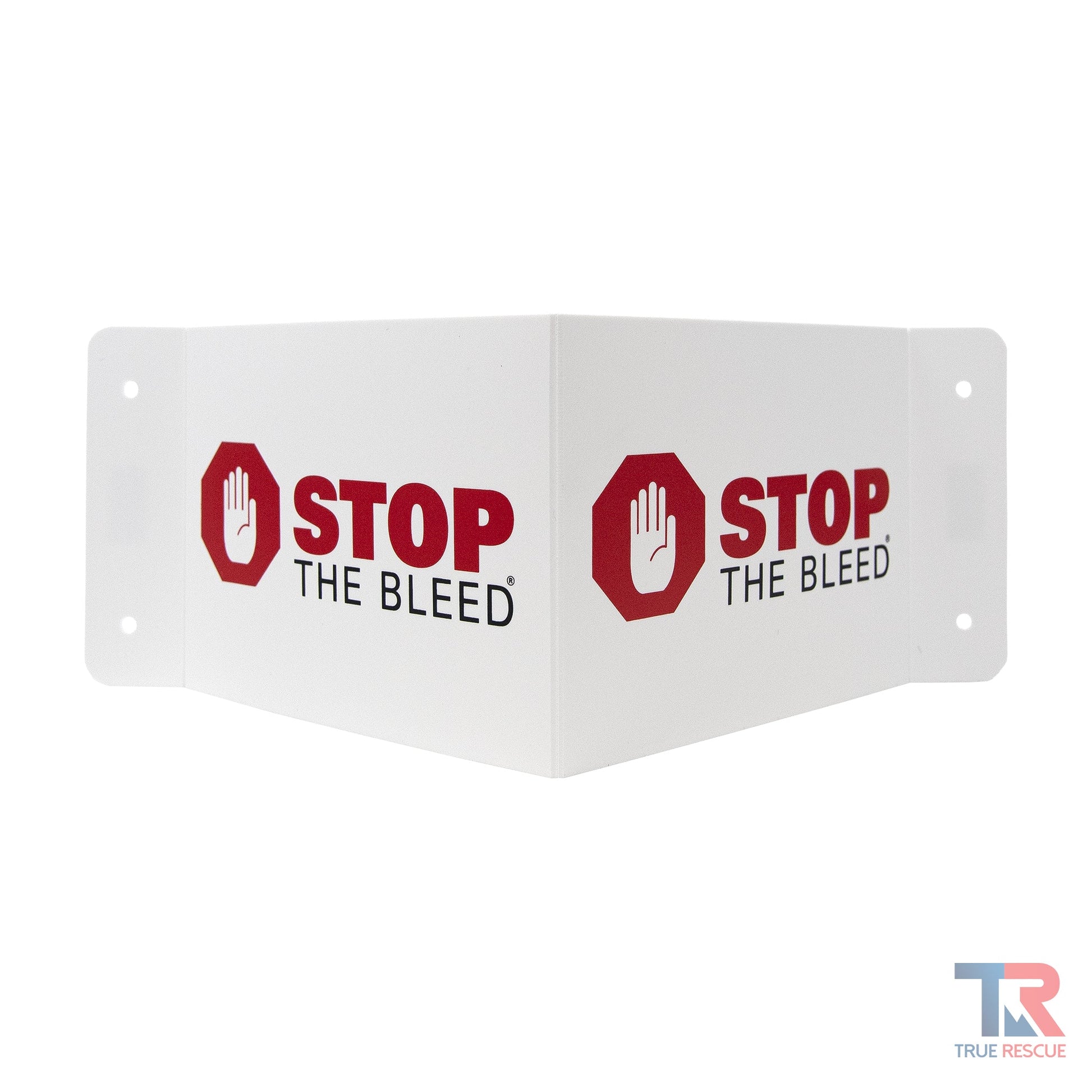 The 3-Way STOP THE BLEED® Flexible 3D Wall Sign is used to indicate the location of a bleeding control cabinet or kit storage solution housing STOP THE BLEED kits, for use by first responders & bystanders.