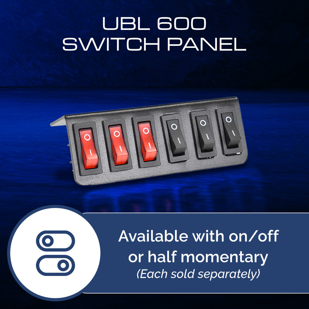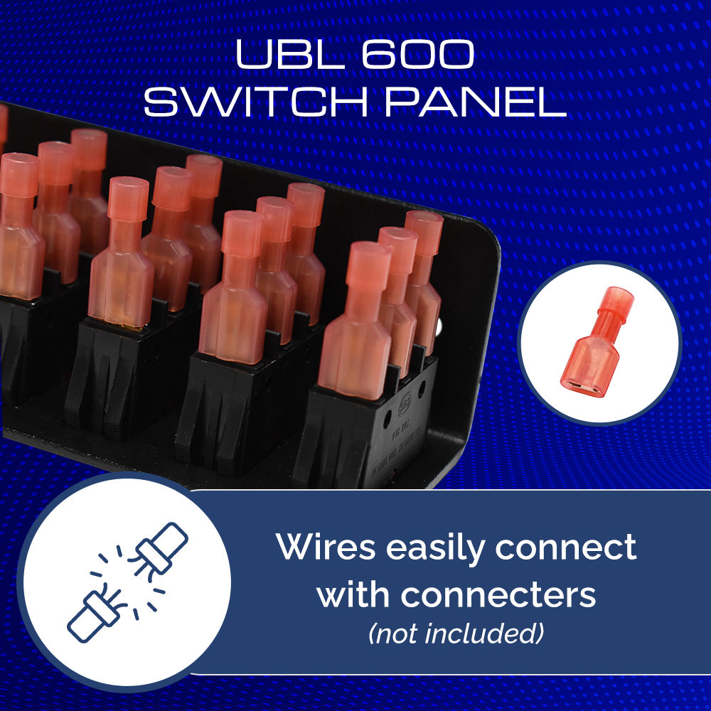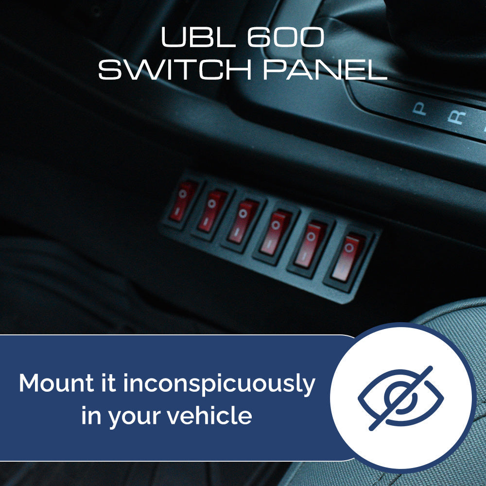 The UBL 600 Switch Panel is designed for seamless integration into your vehicle, offering a user-friendly experience with its easy-to-connect wire connectors. This panel can be discreetly mounted in various locations within your vehicle, ensuring it remains out of sight while still being easily accessible.