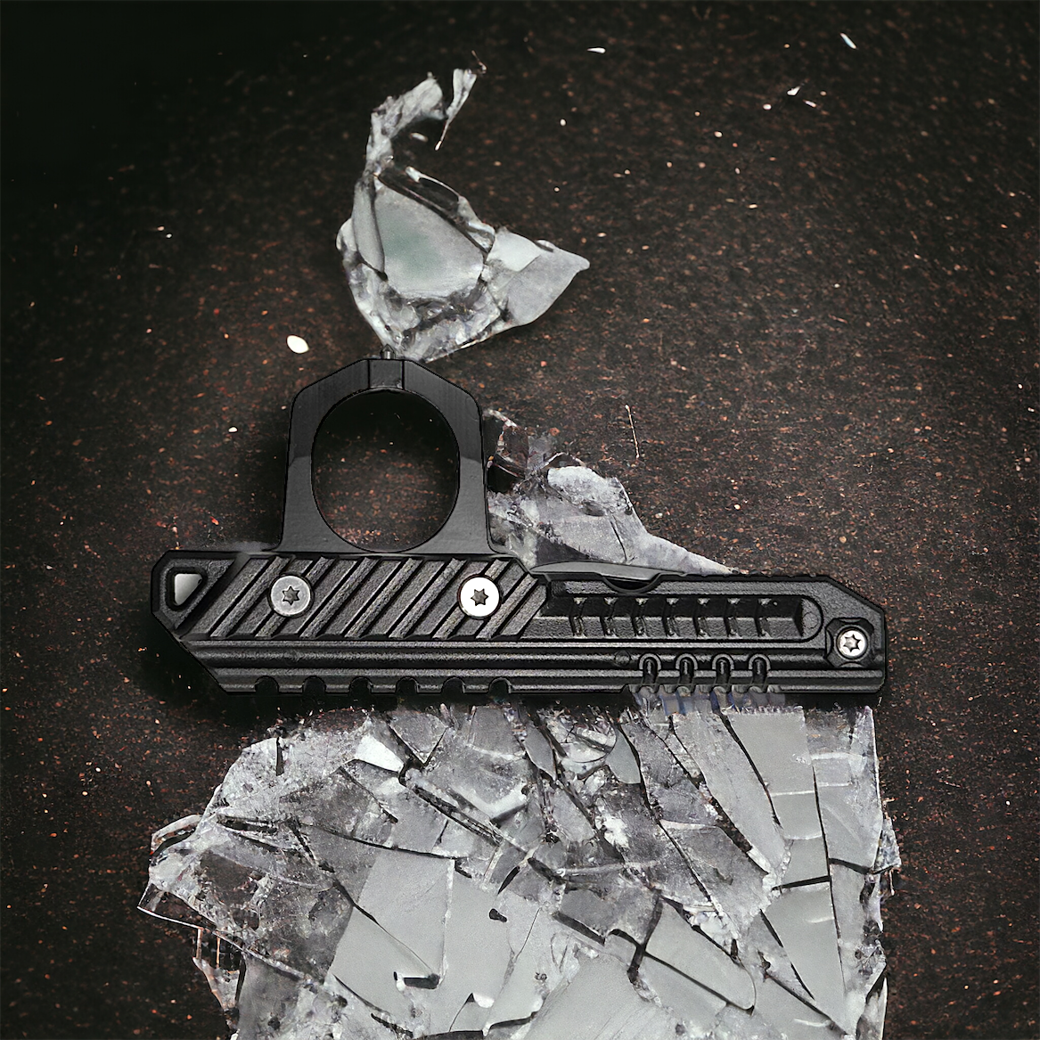 Ergonomic Design: The tool's design focuses on user comfort and safety. The knuckle protector is ergonomically shaped to fit securely over your hand, providing stability and protection during use. The foldable nature of the seatbelt cutter ensures safe handling and storage.