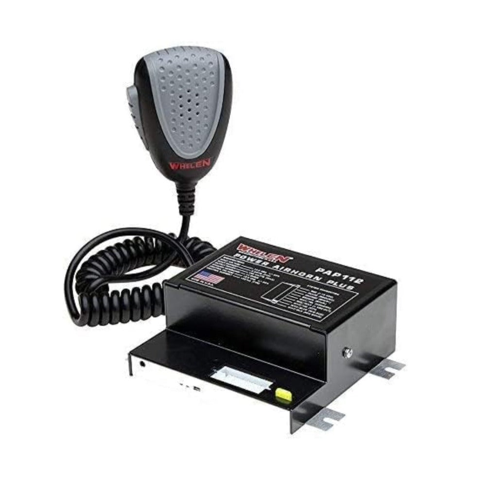 The Whelen Air Horn with Public Address Siren is a cost-effective addition to enhance the volume and legal tone of your car horn. It boasts a power output of 100 watts, making use of a 100-watt siren speaker that can be connected remotely to the vehicle's horn ring. The sound produced is familiar to that used by emergency services such as police, fire, and EMS. A sturdy amplifier housing can be easily mounted in remote locations like the trunk or under the seat. Moreover, the high-gain microphone, along with public address capability and volume adjustment, makes it ideal for communication purposes. This product can also be paired with standard 100-watt siren speakers.